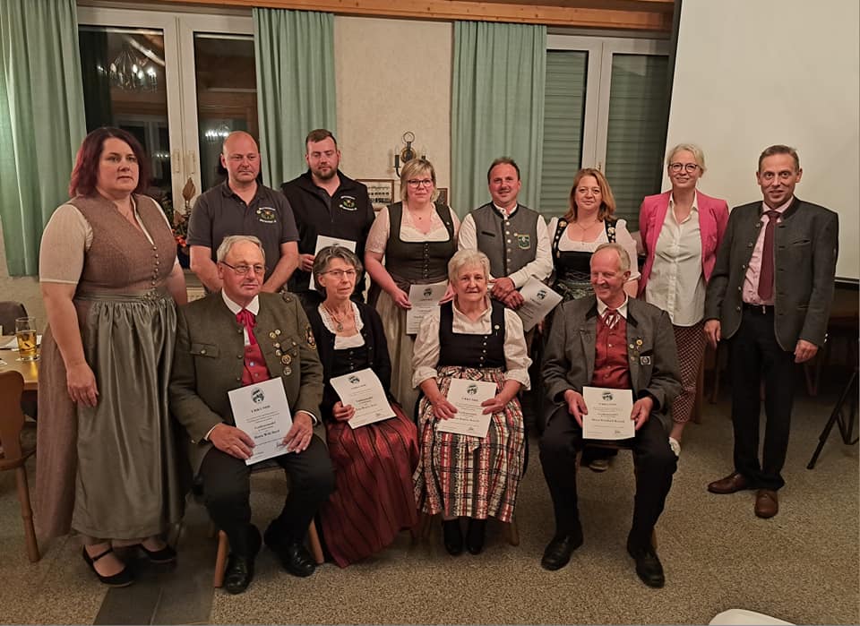 Es wurden Urkunden im Rahmen der Gau- und Bezirksmeisterschaft nachgereicht. Für besondere Treue zum Verein wurden geehrt: für 15 Jahre Thomas Fesl, Jonas Kasberger, Reiner Sondorfer, Johann Bichler und Ludwig Sicklinger; für 25 Jahre Cordula Feßl, Julia Stockmayer, Florian Pillinger, Sebastian Kasberger und Thomas Fuchs; für 40 Jahre Christina Bürgermeister; für 60 Jahre Helmut Feßl, Berta Kapfer, Heinz Scherz.